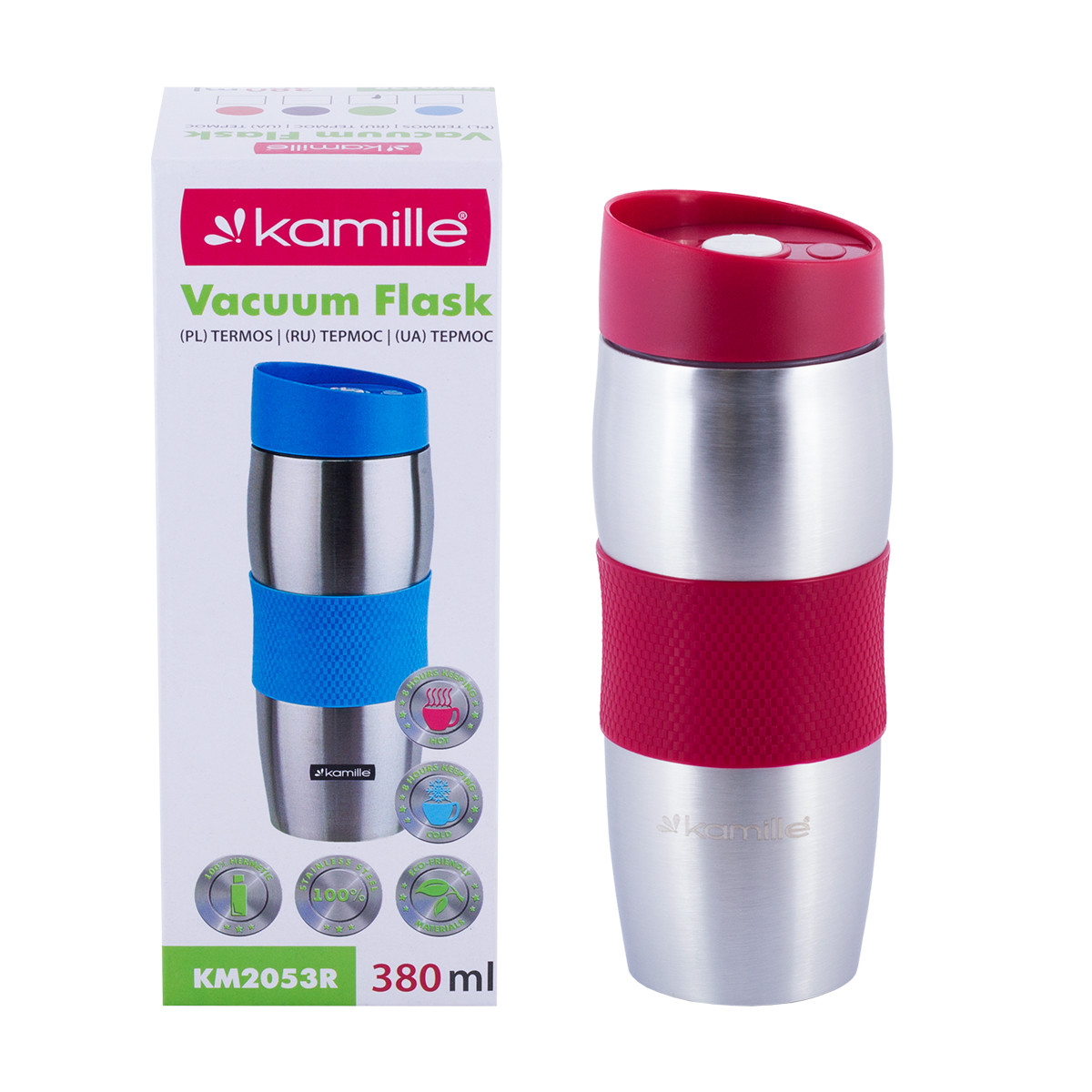 Термокружка Kamille обладает высоким качеством, надежностью, компактными размерами и эстетичным дизайном. Горячее остается горячим, а холодное — холодным. Такая термокружка станет незаменимой в машине, на отдыхе или в путешествии.